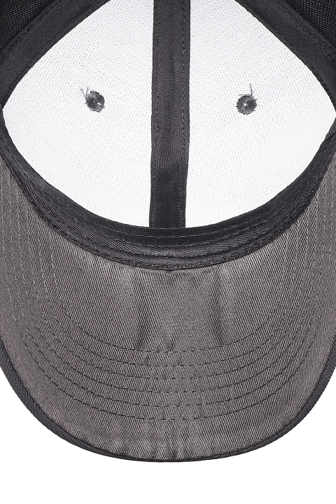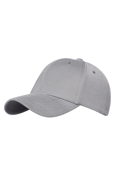 Бейсболка изготовлена из плотной ткани с добавлением спандекса, с классическим изогнутым козырьком. Модель с твердой формой в лобовой части. Размер регулируется металлической застежкой.