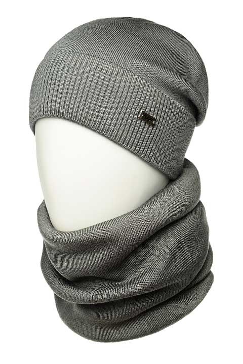 Комплект: шапка с отворотом, одинарная и кожаным ремешком-застежкой сзади, размер: 56-58. + Шарф-снуд труба на флисовой подкладке, размер 25*2 х 25 см.