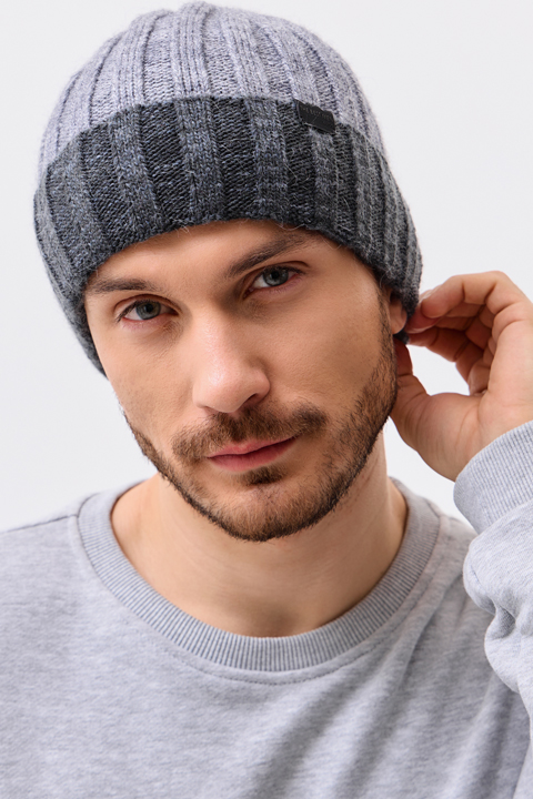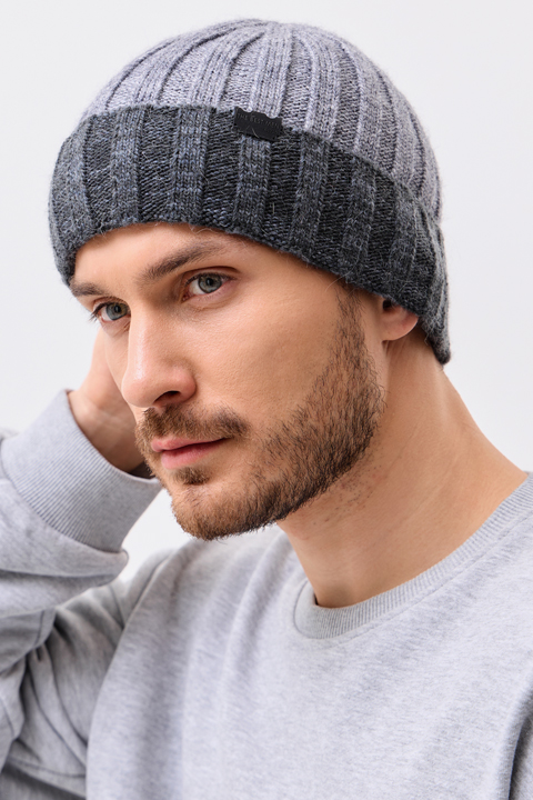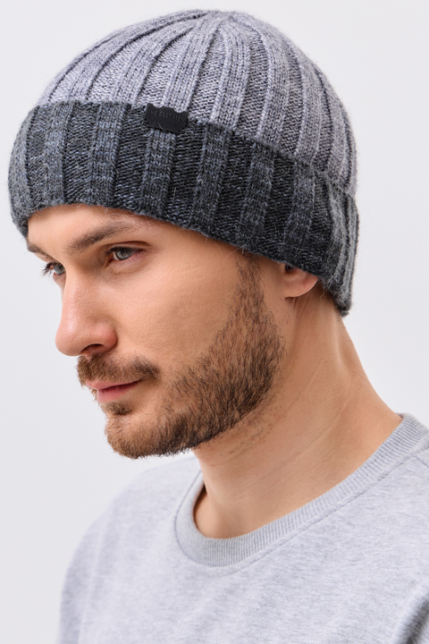 Мужская шапка с отворотом на флисовом подкладе. Вязка плотная и эластичная.