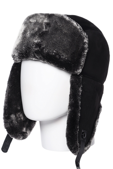 Ушанка выполнена из иск.замши, внутри подклад из иск.меха.