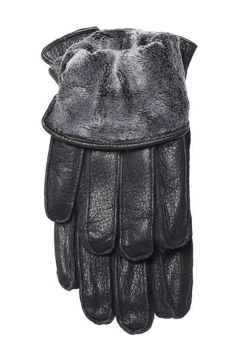 Перчатки мужские из натуральной кожи на плюшевом подкладке. Крой перчаток со швами наружу. Кожа у перчаток мягкая, имеет фактурную, негладкую поверхность.