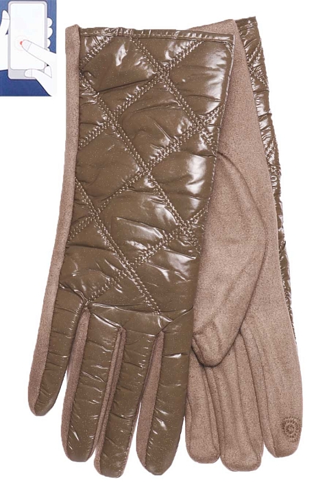 Перчатки женские сенсорные (нашивка на кончике указательного пальца). Комбинированные: ладонь иск.замша на велюровой основе, сверху - курточная ткань на подкладе велюр + тонкий слой синтепона.