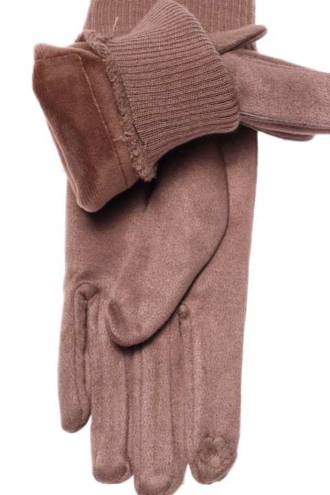 Перчатки женские сенсорные (нашивка на кончике указательного пальца). Комбинированные: ладонь иск.замша на велюровой основе. Сверху - трикотаж на подкладе велюр и вставка из эко-кожи.