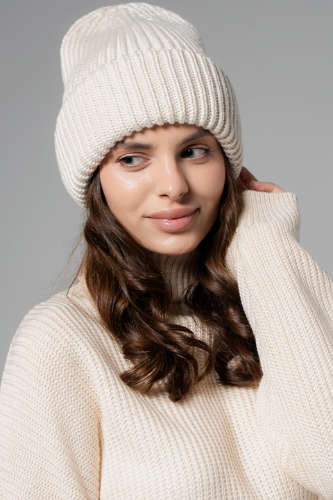 Шапка одинарная с двойным отворотом. Выполнена из пряжи с хлопком (премиум качества). Вязка плотная, эластичная.