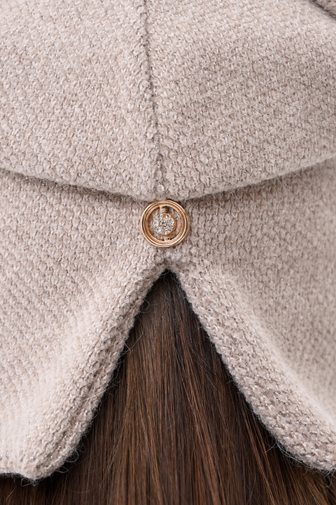 Шапка двойная из мягкой плюшевой пряжи с нитями люрекса. Сзади модель оформлена разрезом 7 см. Вязка плотная, гладкая.
