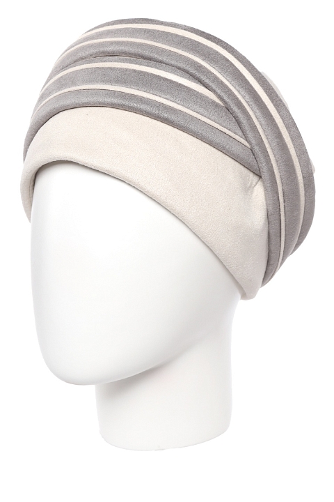 Шапка женская выполнена из мягкого трикотажа с фактурой замши. Резинка сзади регулирует плотность обтягивания шапки.